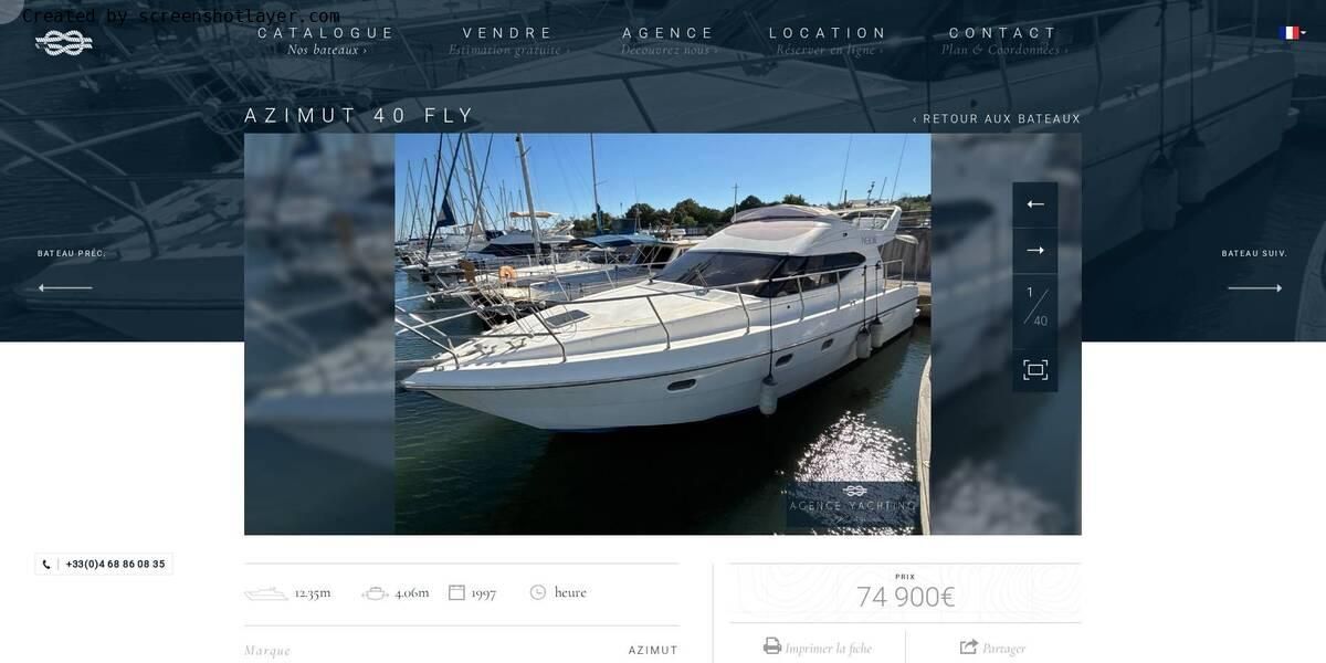 Superbe vedette de prestige, l’Azimut 40 allie élégance italienne, confort et performances en mer. Ses lignes modernes, ses aménagements lumineux et son flybridge spacieux en font un yacht idéal pour la croisière en famille ou entre amis. Construit avec le savoir-faire du chantier Azimut, il offre un parfait équilibre entre raffinement, sécurité et plaisir de navigation.