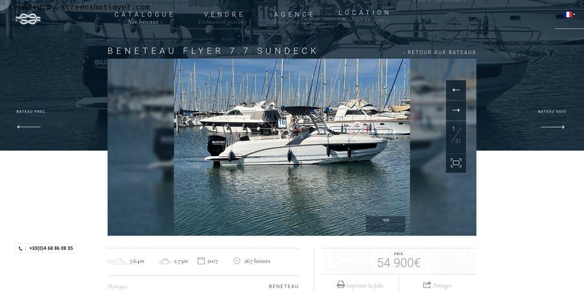 Superbe opportunité avec ce BENETEAU Flyer 7.7 SUNDECK de 2018 motorisé par un Suzuki 250 CV affichant seulement 267 heures, un ensemble parfaitement entretenu avec dossier factures complet et suivi rigoureux des entretiens. Ce bateau de plaisance allie sportivité, confort et polyvalence, idéal pour la navigation côtière, la pêche, les loisirs nautiques ou les sorties en famille. En 2023, un propulseur a été installé pour des manœuvres facilitées, renforçant le plaisir et la sécurité à bord. L’équipement haut de gamme comprend un guindeau électrique double commande, un élégant T-Top inox qui lui confère un look moderne et marin, ainsi qu’un mât de ski pour les amateurs de sports nautiques...