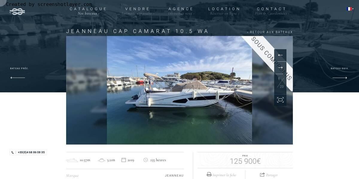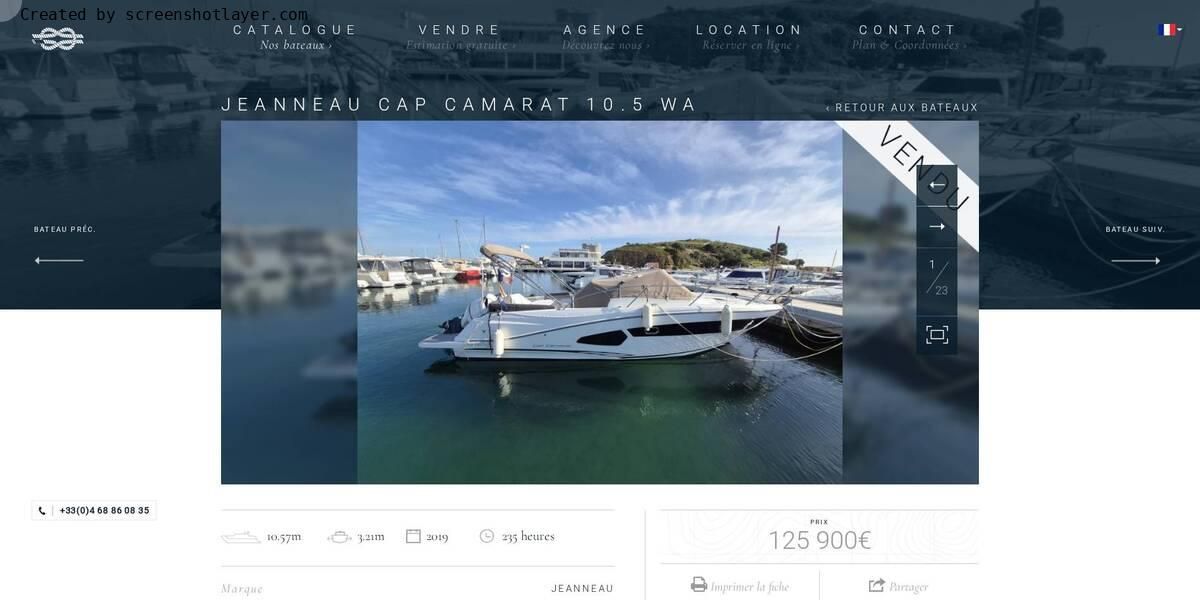 JEANNEAU CAP CAMARAT 10.5 WA, extrêmement équipé dans un excellent état général. Motorisé en 2 x 350 Cv SUZUKI, seulement 215 Heures de navigation, entretien réalisé pour 2024.