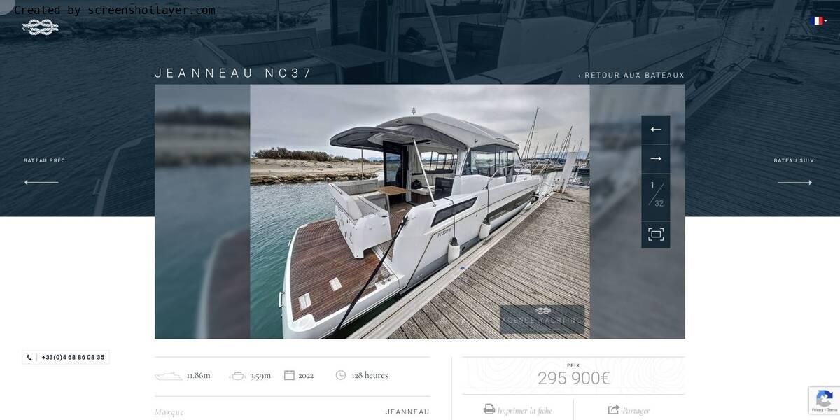 Nous sommes heureux de vous proposer ce magnifique Jeanneau NC37 d'occasion de 2022. Ce bateau a été méticuleusement entretenu et est en excellent état. Il est équipé de toutes les options nécessaires pour une croisière confortable et sûre.